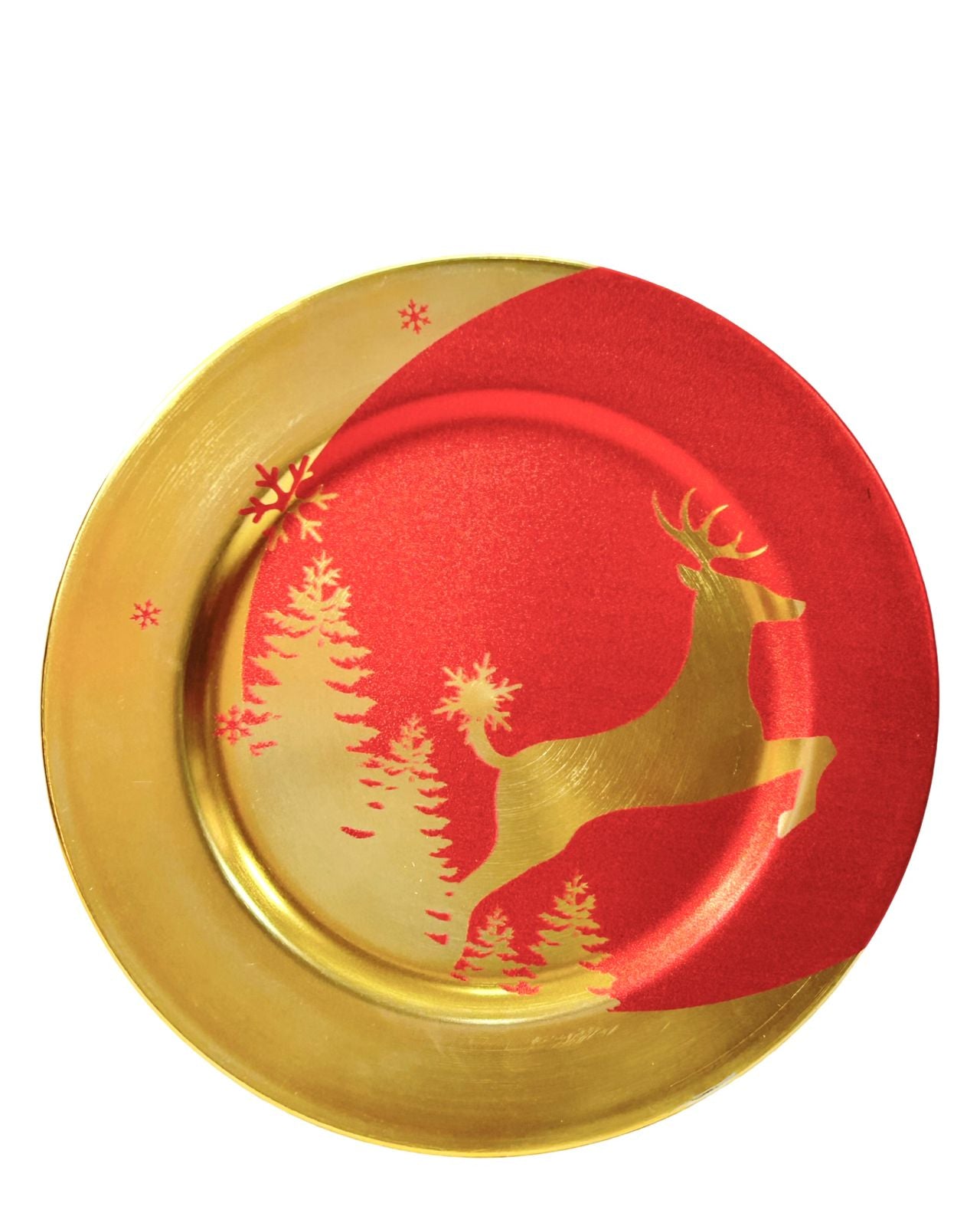 Este plato decorativo de Navidad, con un elegante diseño en rojo y dorado estilo reno, mide 32 cm de diámetro. Su acabado sofisticado aporta un toque festivo y refinado a cualquier espacio, ideal para realzar la decoración navideña con un detalle distintivo y luminoso. Perfecto para exhibir dulces, velas o como pieza central en mesas de temporada.