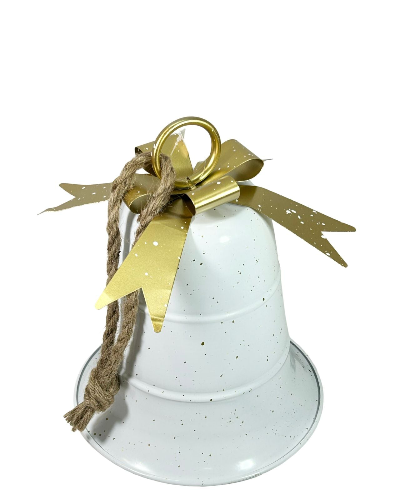 Esta campana blanca de 31x25 cm, realzada con un elegante moño metálico, aporta un toque sofisticado y delicado a cualquier espacio. Su diseño refinado combina lo clásico con un detalle moderno, ideal para decoraciones que buscan distinción y estilo sutil. Perfecta para realzar ambientes festivos o decorativos con un acabado elegante y discreto.