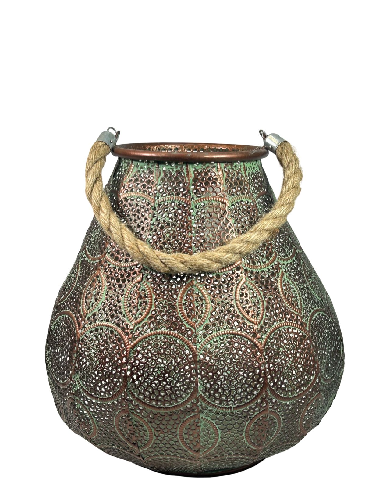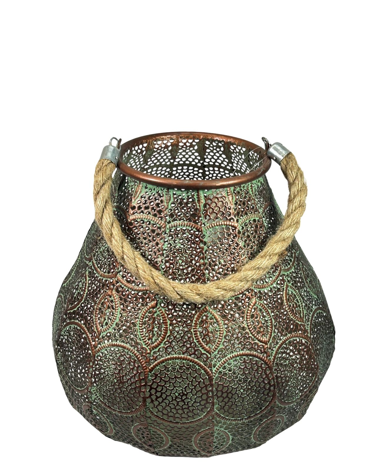Bricero de diseño mandala en metal, con dimensiones de 32 x 31 cm que lo hacen ideal para espacios medianos. Su patrón geométrico mandala aporta un toque artístico y contemporáneo a cualquier ambiente. Fabricado en metal resistente, combina durabilidad con elegancia decorativa. Perfecto para organizar plantas, flores o como pieza decorativa independiente que refleja sofisticación y buen gusto en la decoración del hogar.