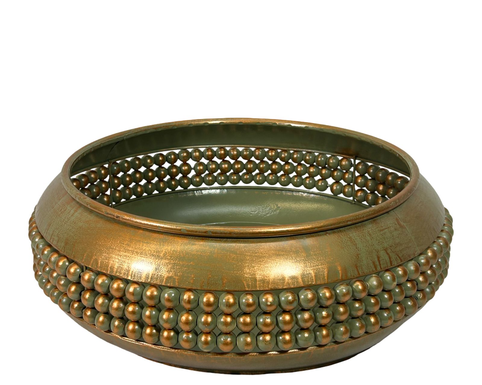 Centro decorativo de cobre con acabado pulido que combina elegancia y funcionalidad. Disponible en dos tamaños versátiles, se adapta perfectamente a cualquier espacio de tu hogar. Su forma redonda y tonalidad cobriza crean un punto focal sofisticado en mesas de comedor, consolas o centros de estar. Material resistente que mantiene su brillo característico. Una pieza versátil que eleva la decoración con estilo contemporáneo y calidez metálica.