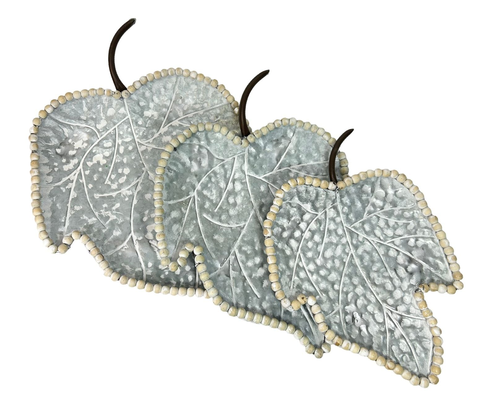 Conjunto de tres centros de mesa en hoja natural con dimensiones escalonadas de 50, 45 y 40 centímetros. Cada pieza presenta un acabado elegante que resalta la belleza orgánica del material, ideal para crear composiciones visuales dinámicas en tu espacio. Perfectos para decorar mesas de comedor, consolas o estanterías, estos centros de mesa aportan sofisticación y calidez a cualquier ambiente. Su diseño versátil permite utilizarlos de forma individual o en conjunto, adaptándose a diferentes estilos de decoración.