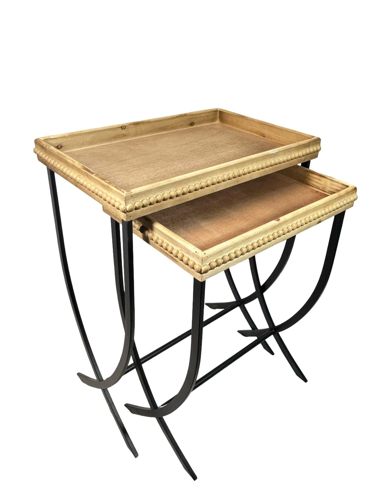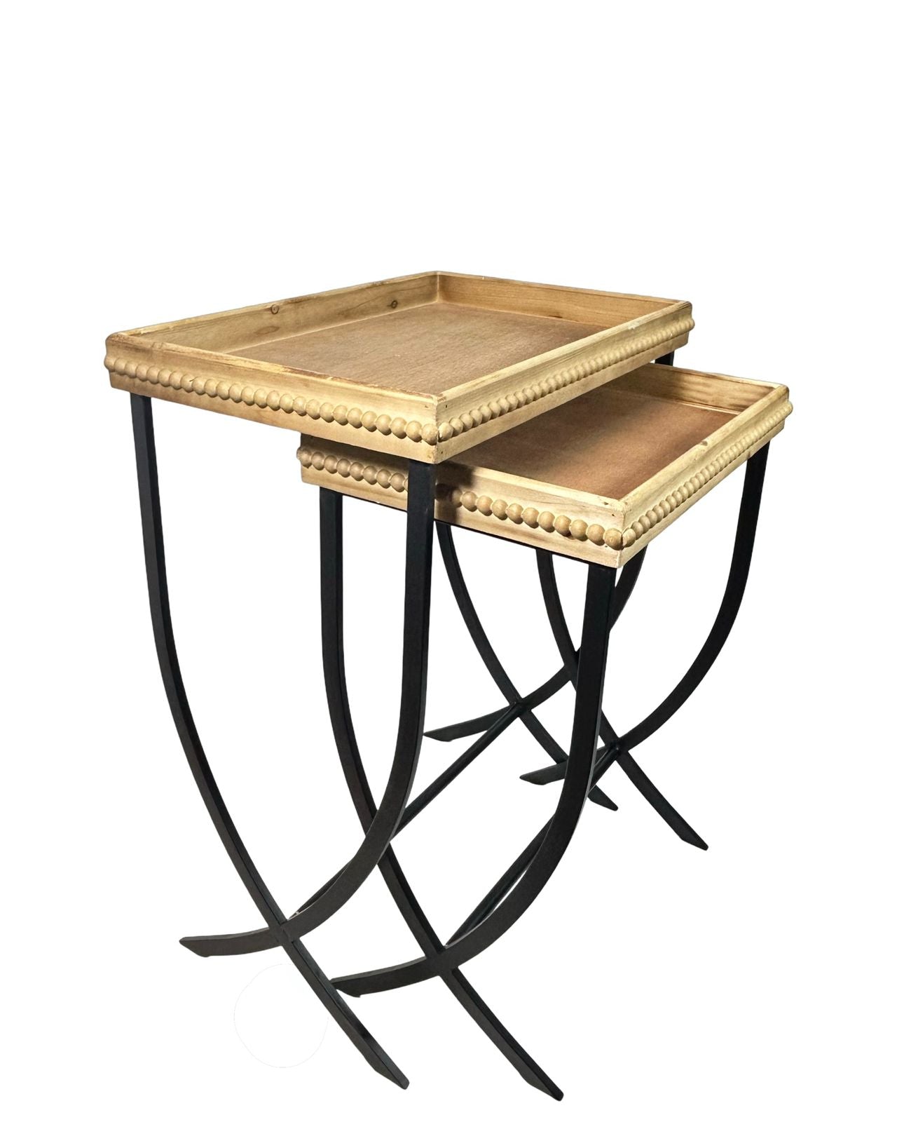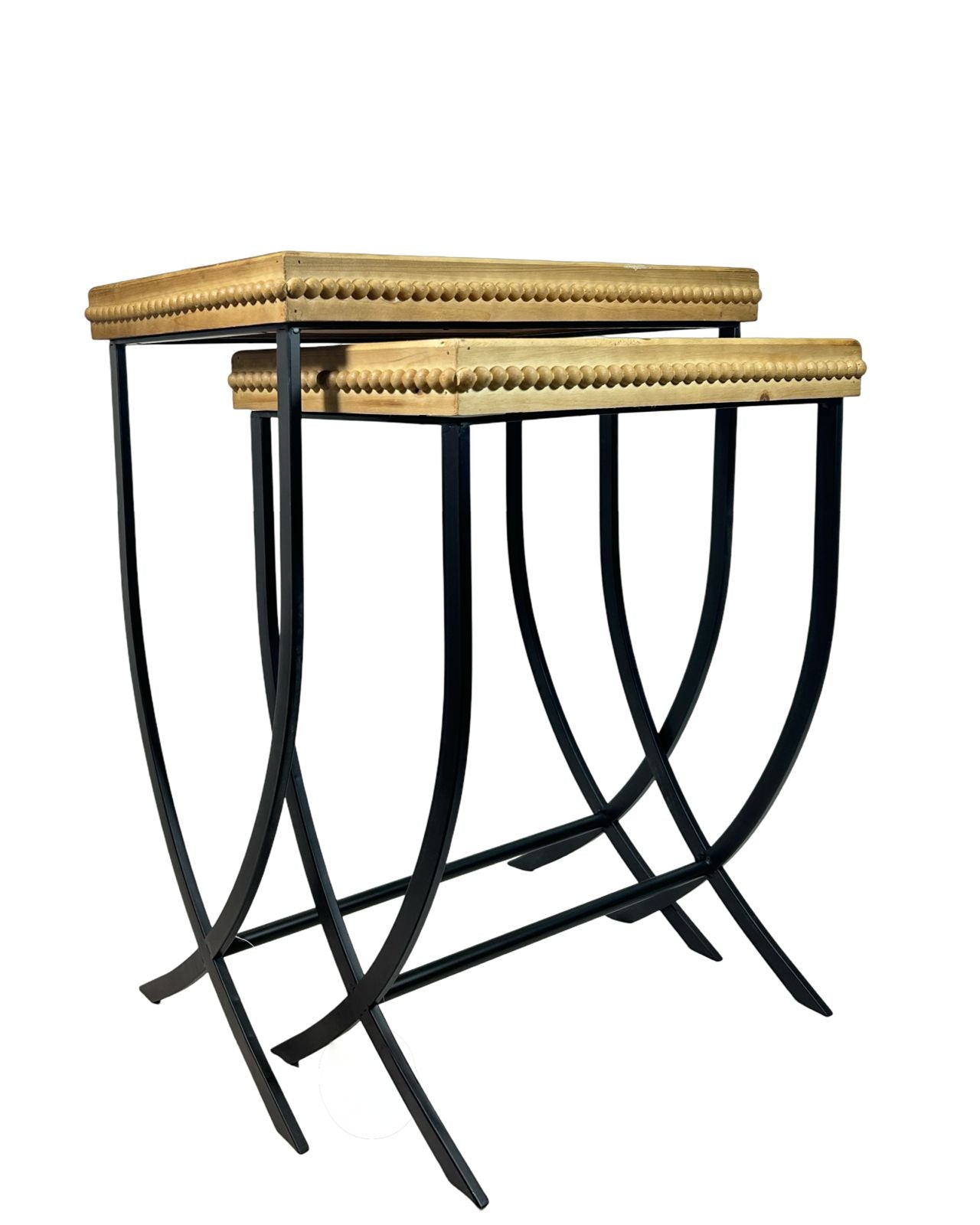 Conjunto de dos mesas auxiliares en madera maciza con diseño rectangular que combina funcionalidad y elegancia. La primera pieza mide 70 cm, ideal para espacios amplios, mientras que la segunda de 63 cm se adapta perfectamente a rincones más reducidos. Ambas cuentan con acabados refinados que complementan cualquier estilo decorativo, desde clásico hasta contemporáneo. Perfectas para crear puntos de apoyo estratégicos en salas, dormitorios o espacios de trabajo, estas mesas ofrecen durabilidad y versatilidad en un solo set.
