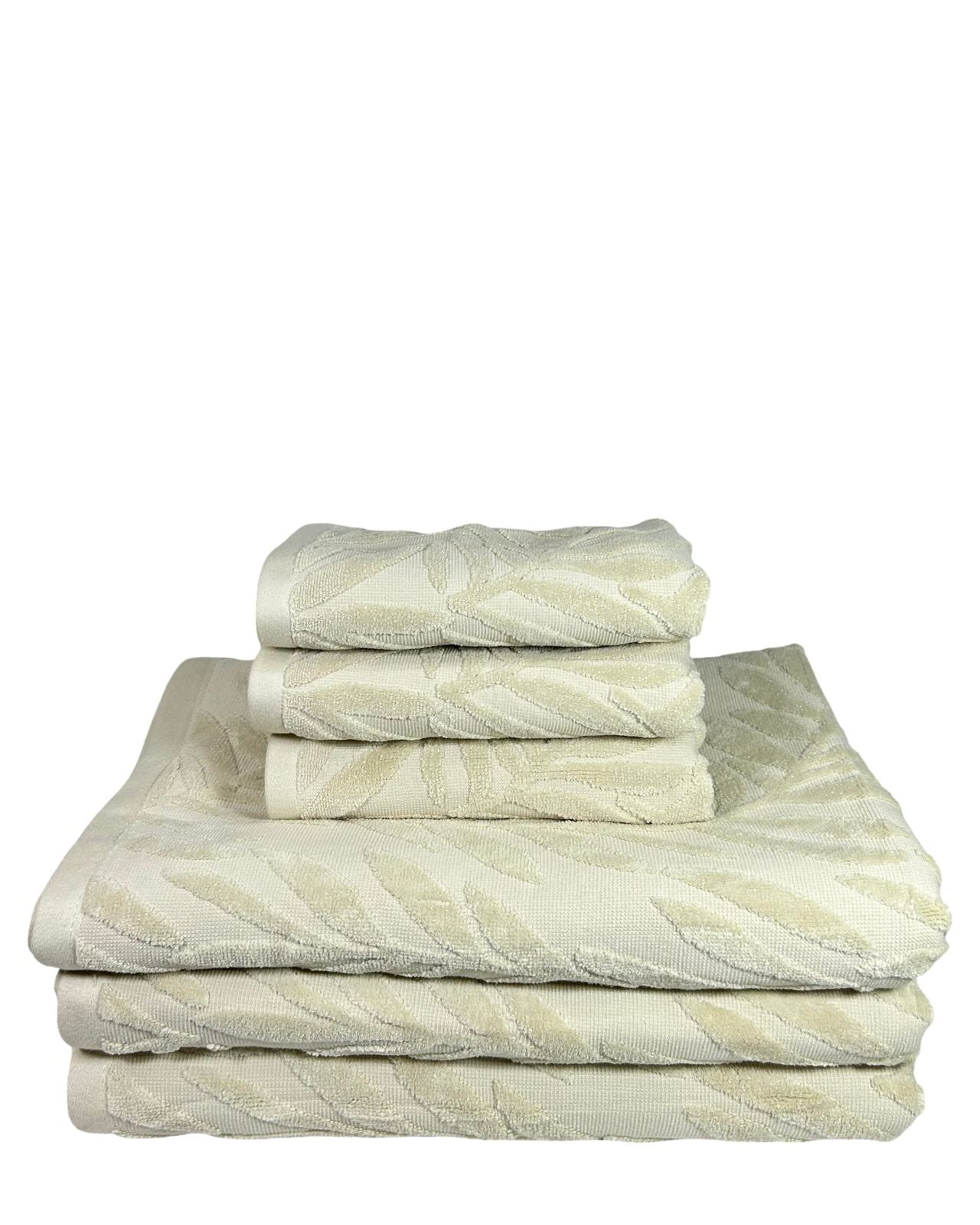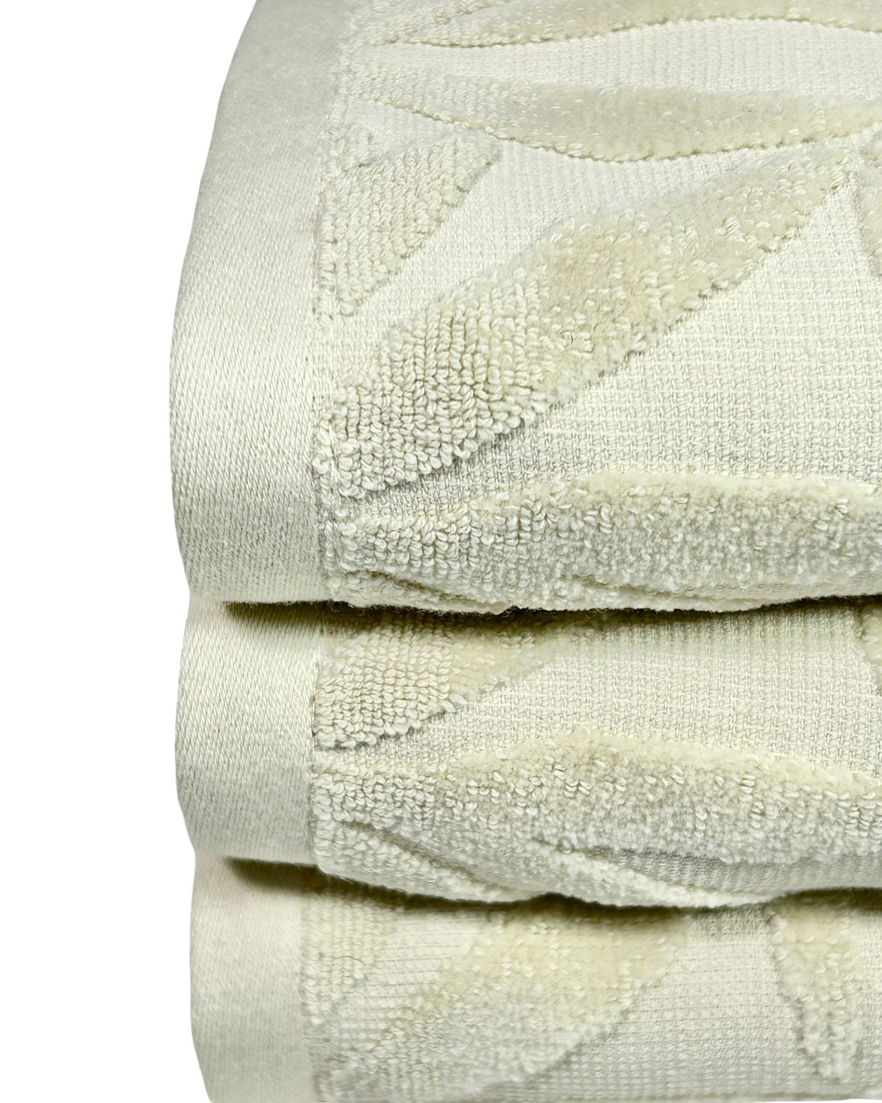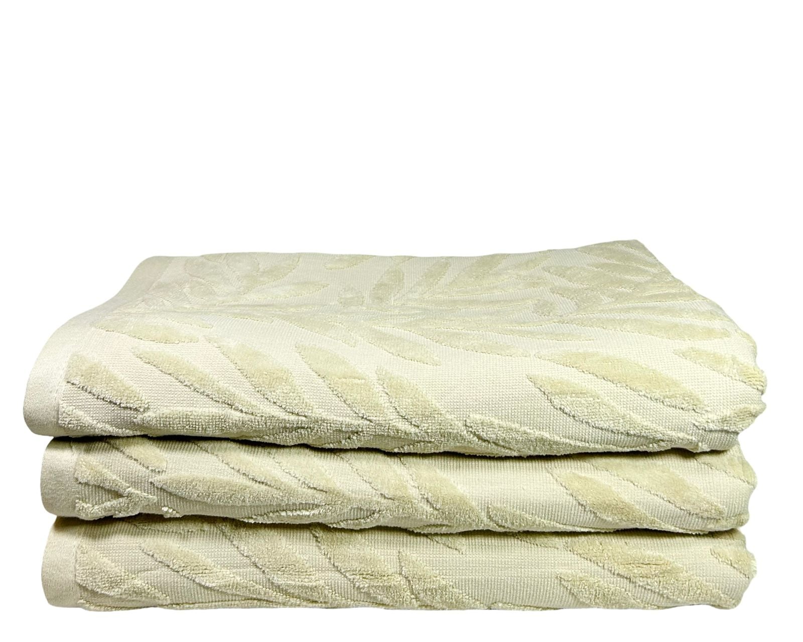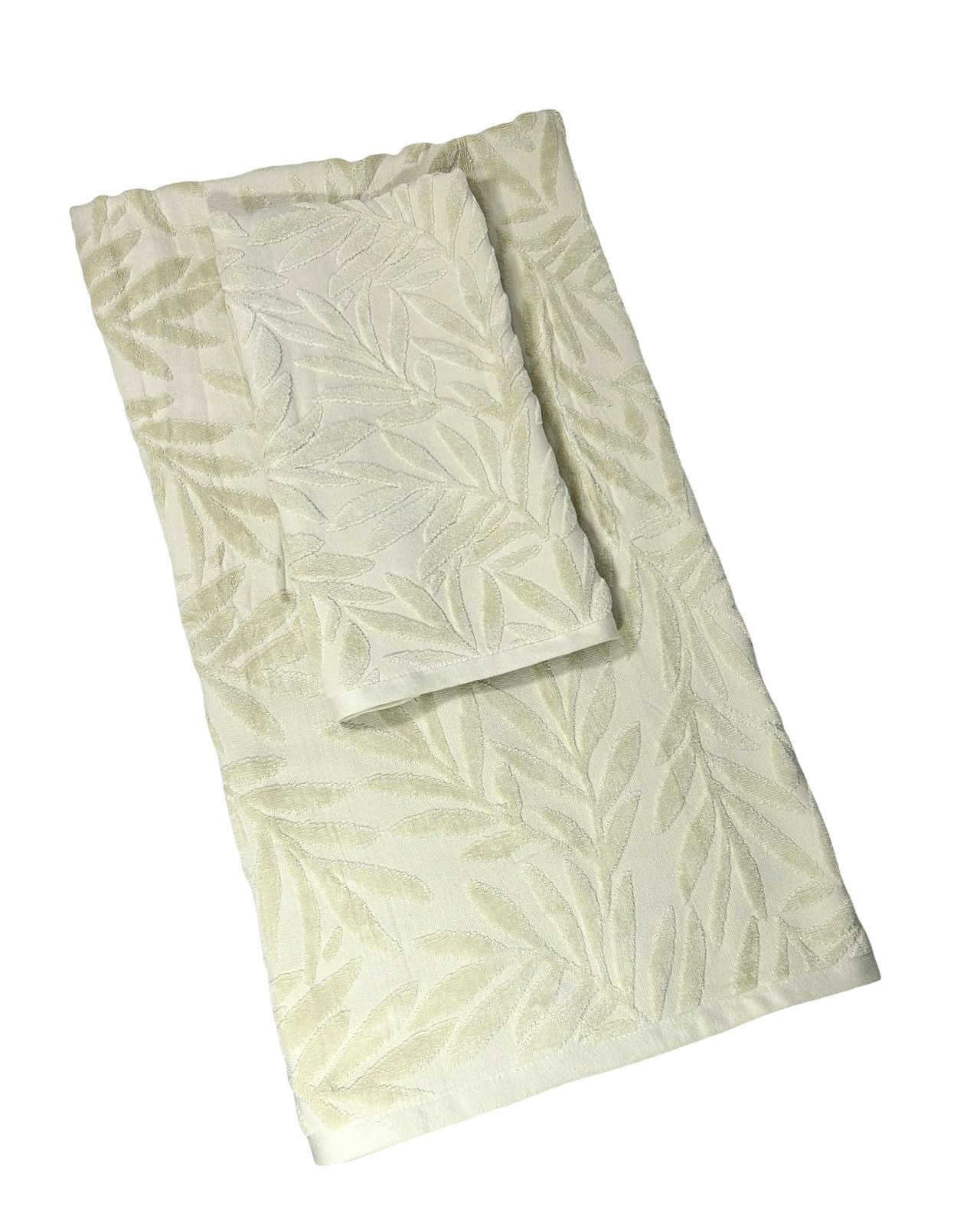 Toalla de algodón con diseño de hojas en relieve que añade textura y elegancia a tu baño. Disponible en dos tamaños para adaptarse a tus necesidades: formato estándar para uso diario y tamaño grande para mayor cobertura. El acabado repujado proporciona un toque artesanal sofisticado, mientras que la tela absorbe la humedad de manera eficiente. Perfecta para complementar una decoración moderna y refinada.