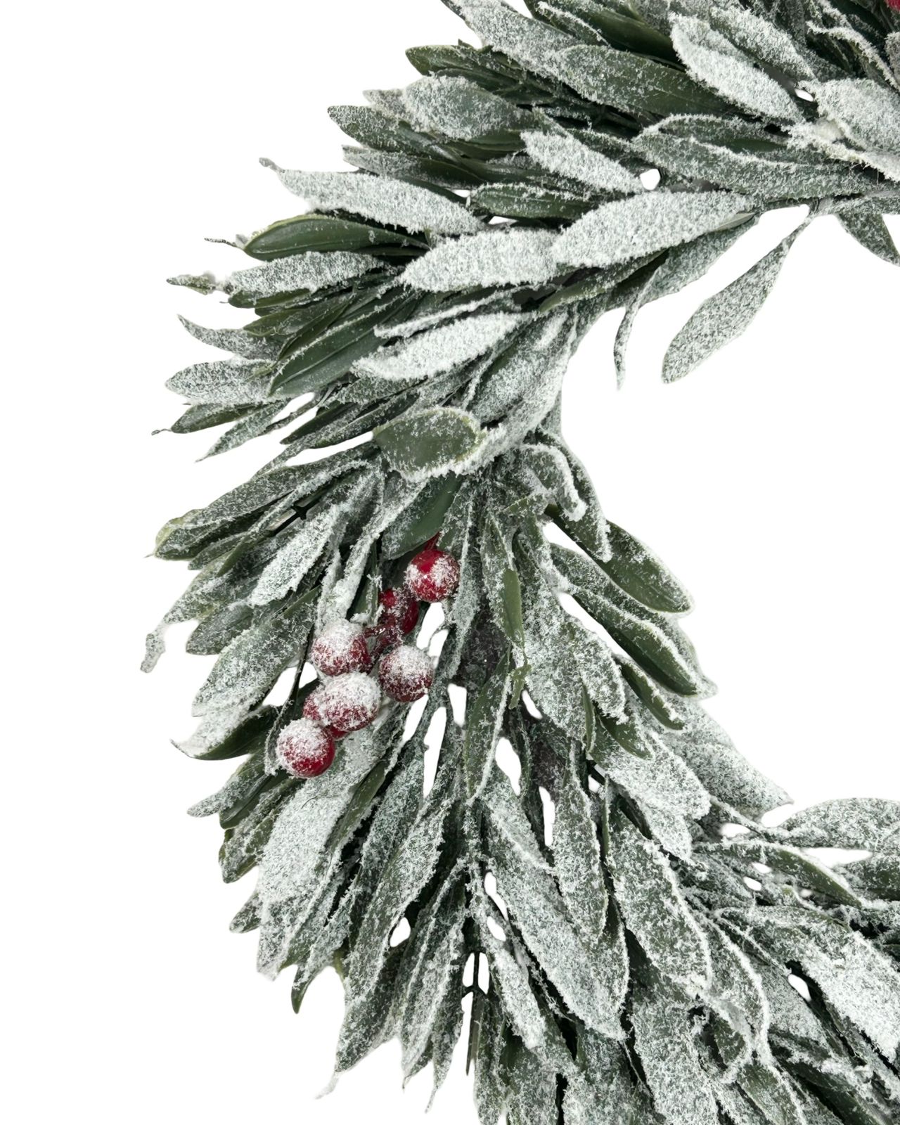 Esta elegante corona verde, elaborada con hojas de laurel, mide 35 centímetros de diámetro. Su diseño sobrio y natural aporta un toque de distinción y sofisticación a cualquier ambiente, ideal para ocasiones especiales o para realzar la decoración de su espacio con un símbolo clásico de honor y eternidad.