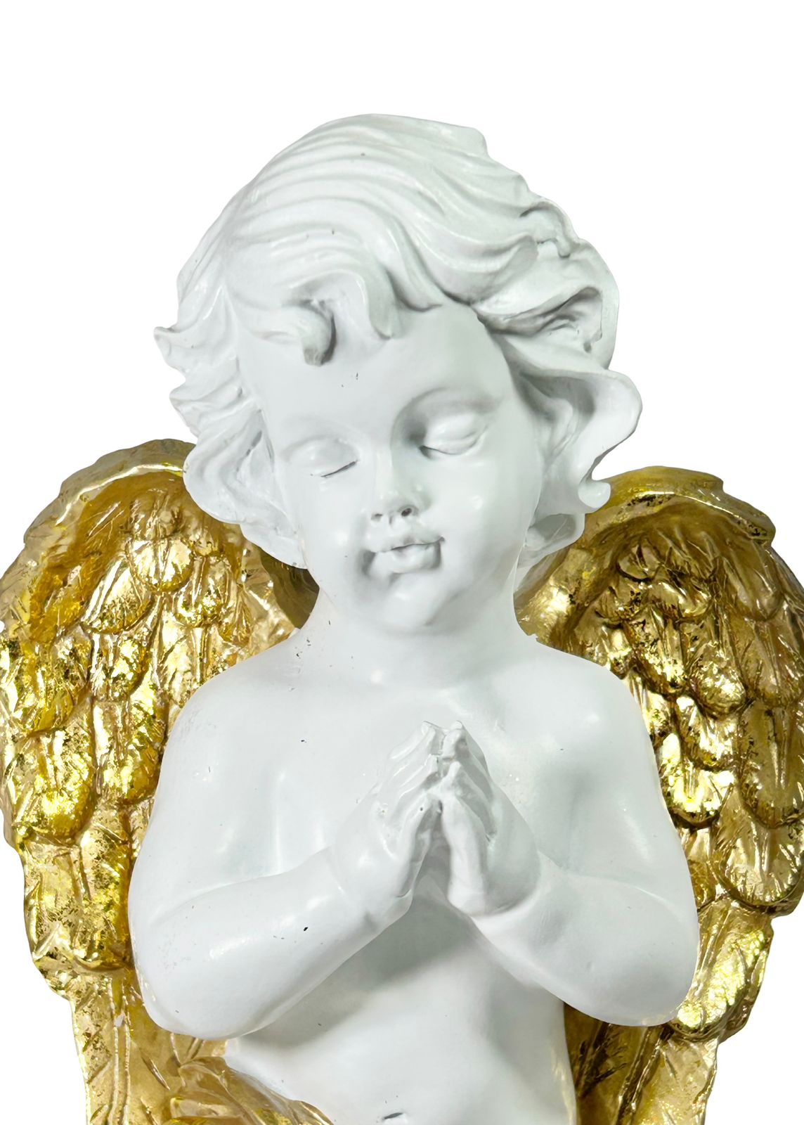 Esta elegante figura de ángel mediano, con alas detalladas, mide 27 x 19 cm y aporta un toque de serenidad y sofisticación a cualquier espacio. Su diseño delicado y proporciones equilibradas la convierten en un elemento decorativo ideal para ambientes que buscan transmitir paz y refinamiento. Perfecto para realzar la atmósfera de su hogar o lugar de trabajo con un símbolo de calma y protección.