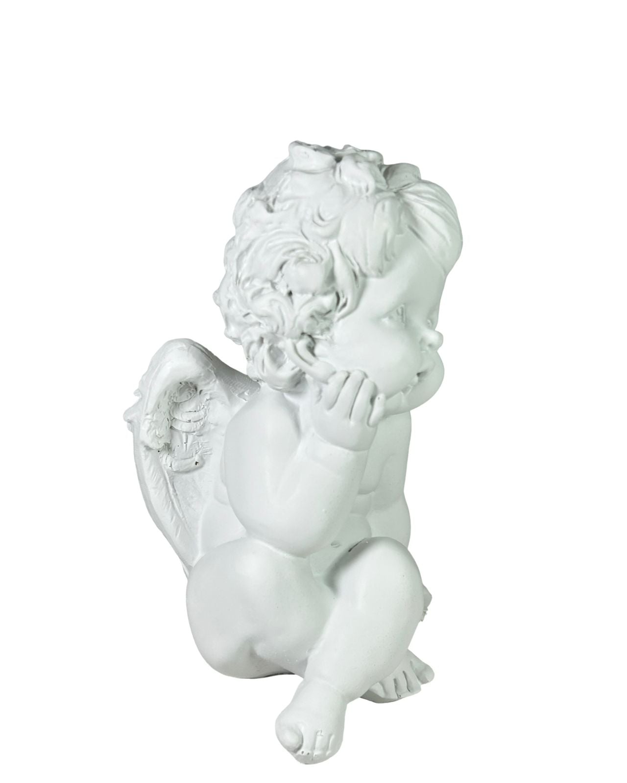 The Angel Pensado in pristine white, measuring 18x13 cm, adds a touch of elegance to any space. Its refined design and subtle size make it a graceful accent piece, perfect for enhancing your décor with a sophisticated and peaceful presence.