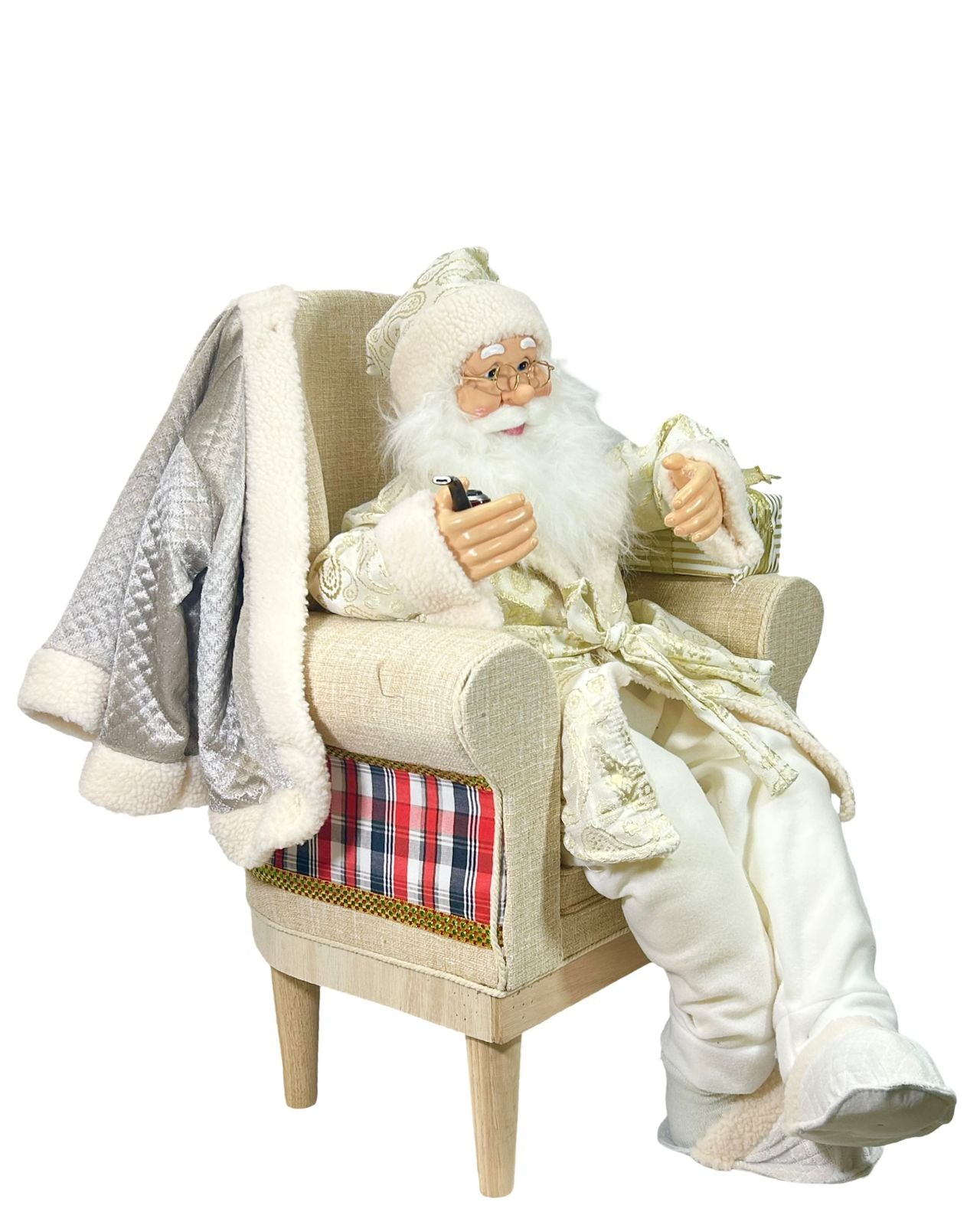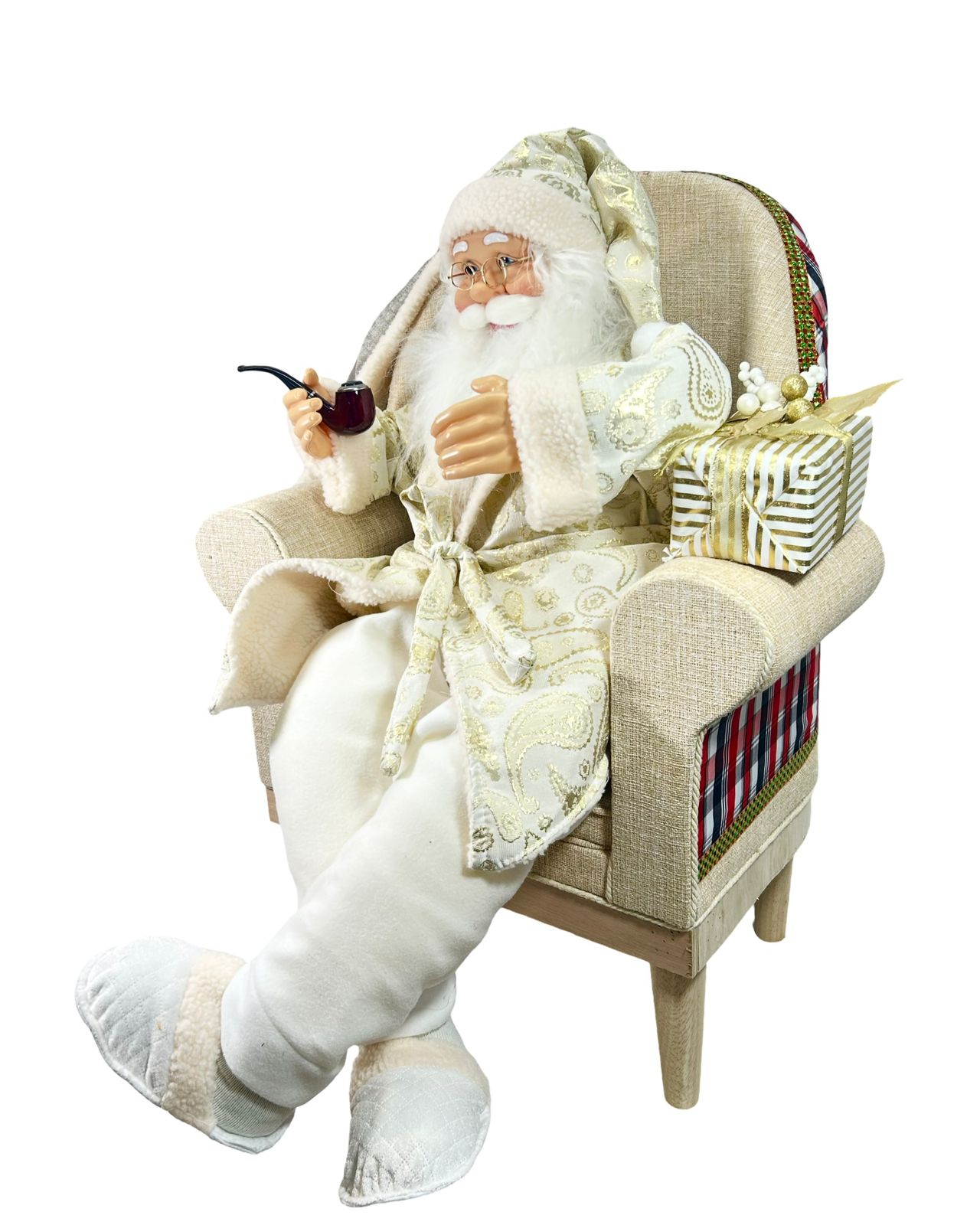 This elegant Santa Claus chair, measuring 80x55 cm, combines festive charm with refined design. Crafted for comfort and style, it adds a sophisticated touch to holiday decor, making any space feel warm and inviting during the festive season. Perfect for creating memorable holiday moments with family and guests.