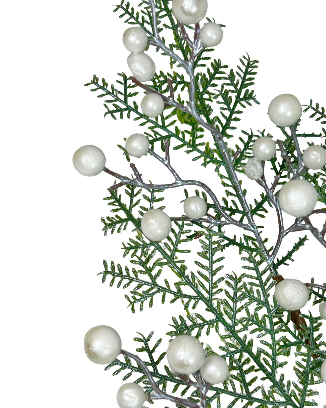 This elegant 72 cm pine branch adorned with delicate pearl accents brings a refined touch of nature indoors. Perfect for sophisticated floral arrangements or seasonal décor, it adds subtle texture and understated luxury to any setting. Its graceful design blends effortlessly with classic or contemporary styles, enhancing your space with a timeless natural charm.