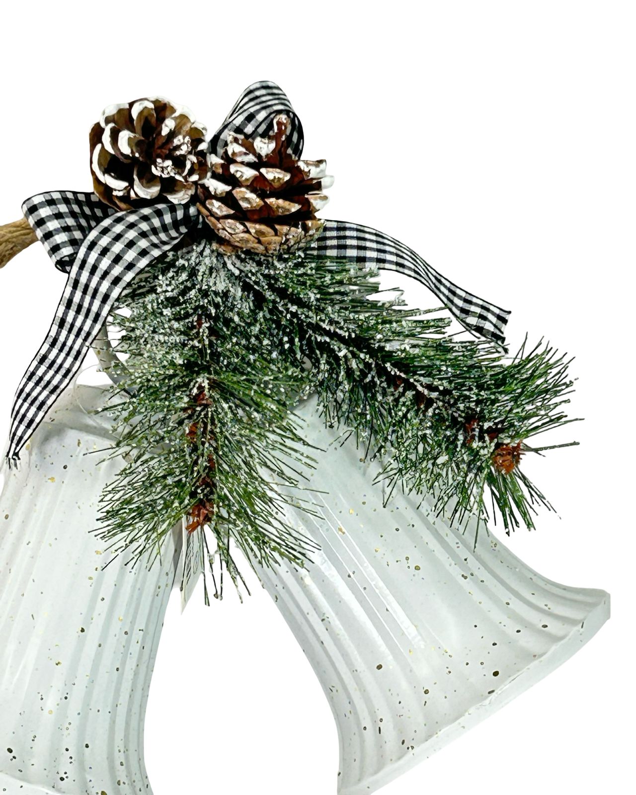 These elegant double white bells feature a delicate pineapple design, measuring 21x25 cm. Their refined craftsmanship and subtle detailing make them an exquisite accent for sophisticated décor, perfect for adding a graceful touch to any space or festive arrangement.