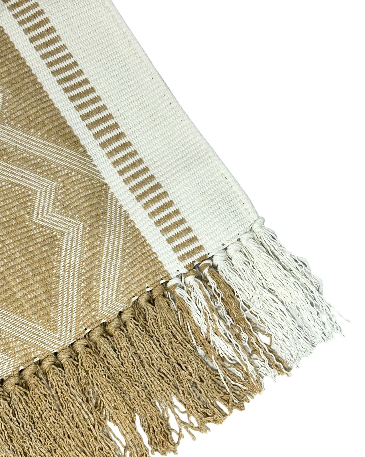 Camina tejida en jaquard con patrón geométrico que añade textura y movimiento a cualquier espacio. Sus dimensiones de 180x35 cm la hacen perfecta para colocar sobre sofás, camas o muebles, brindando calidez y estilo. El tono camel neutral combina fácilmente con diferentes paletas de decoración, creando un ambiente acogedor y sofisticado en tu hogar.