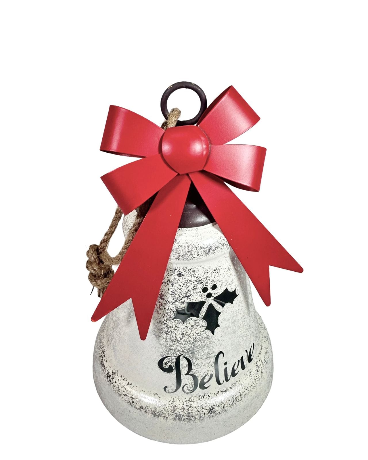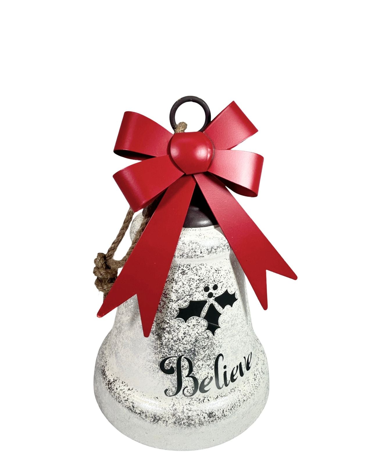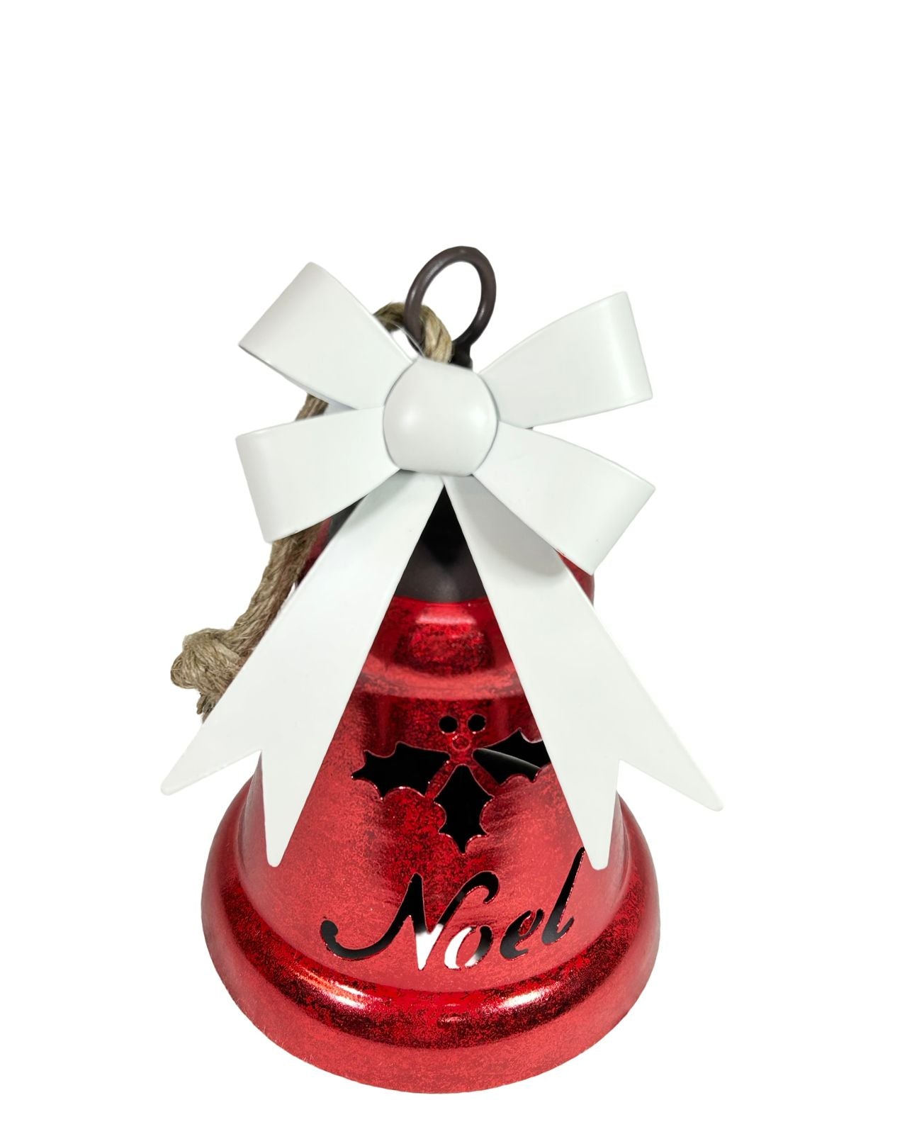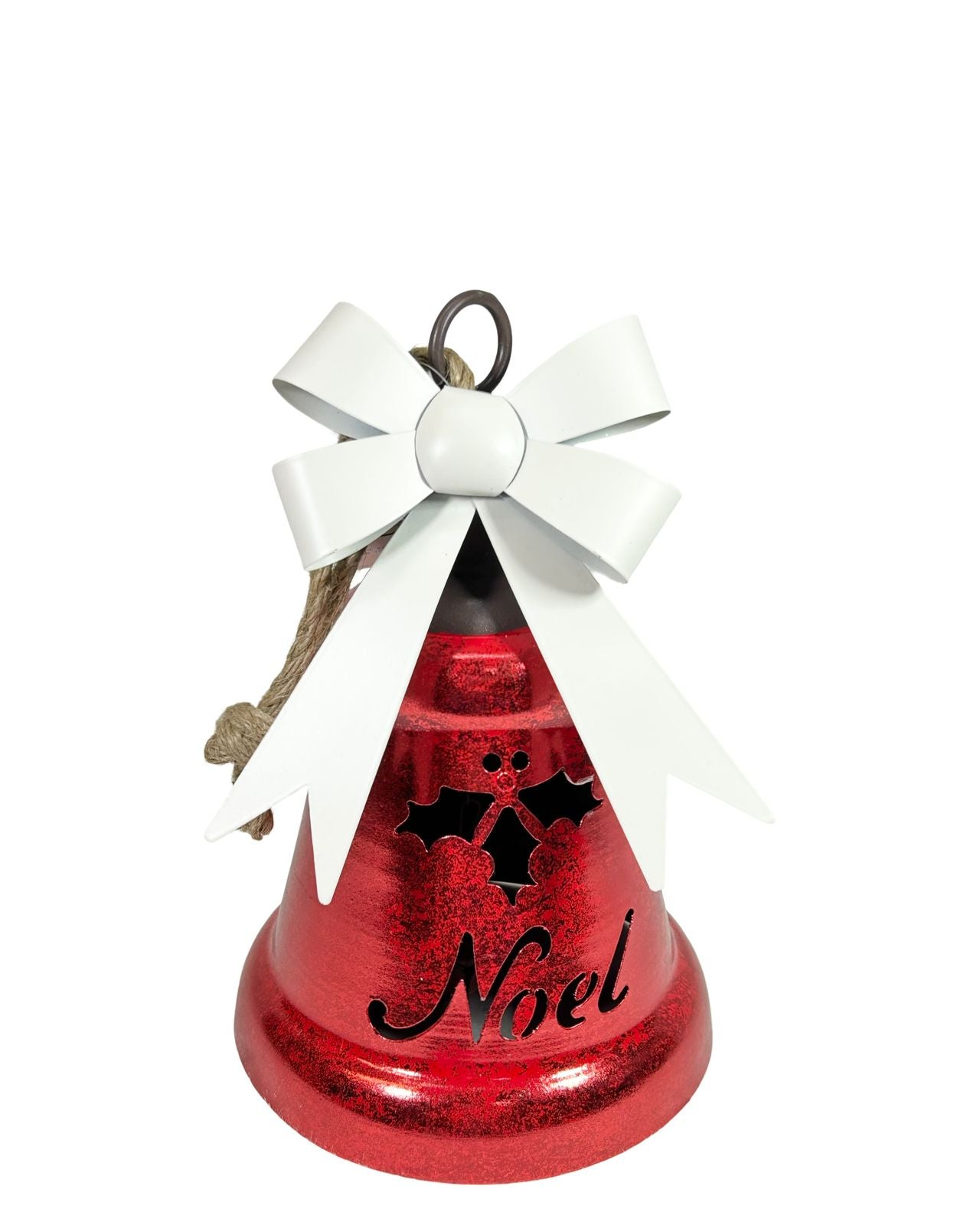 Esta campana dorada de 28x18 cm, adornada con un elegante moño rojo, aporta un toque sofisticado y festivo a cualquier decoración. Su diseño clásico y detalles refinados la convierten en un elemento destacado para celebraciones y ambientes que buscan distinción y calidez. Ideal para complementar espacios con un estilo cuidado y festivo, agregando un brillo sutil y un contraste vibrante gracias al moño rojo.
