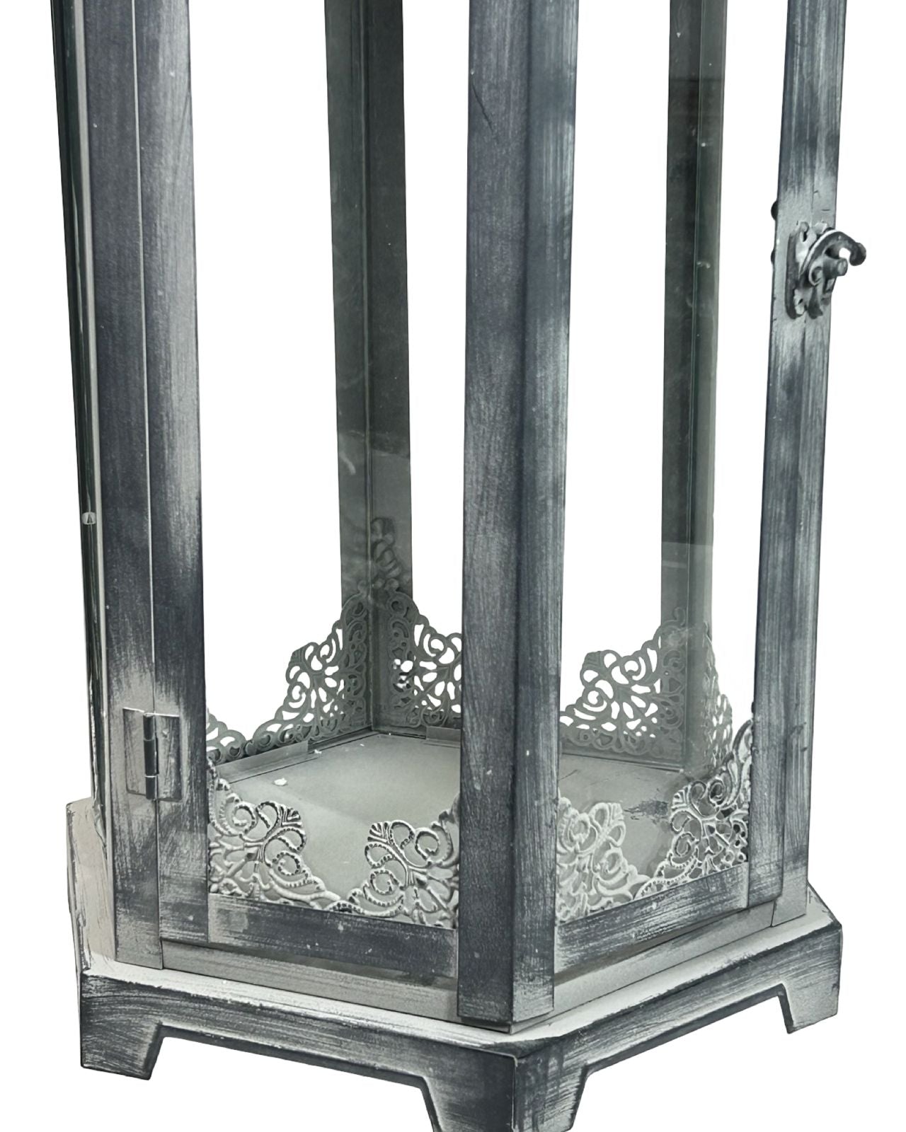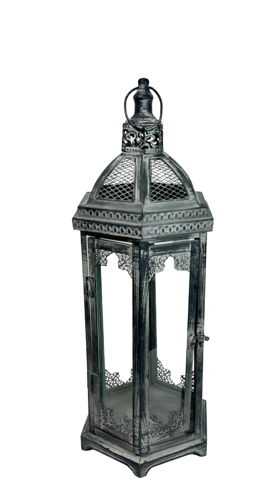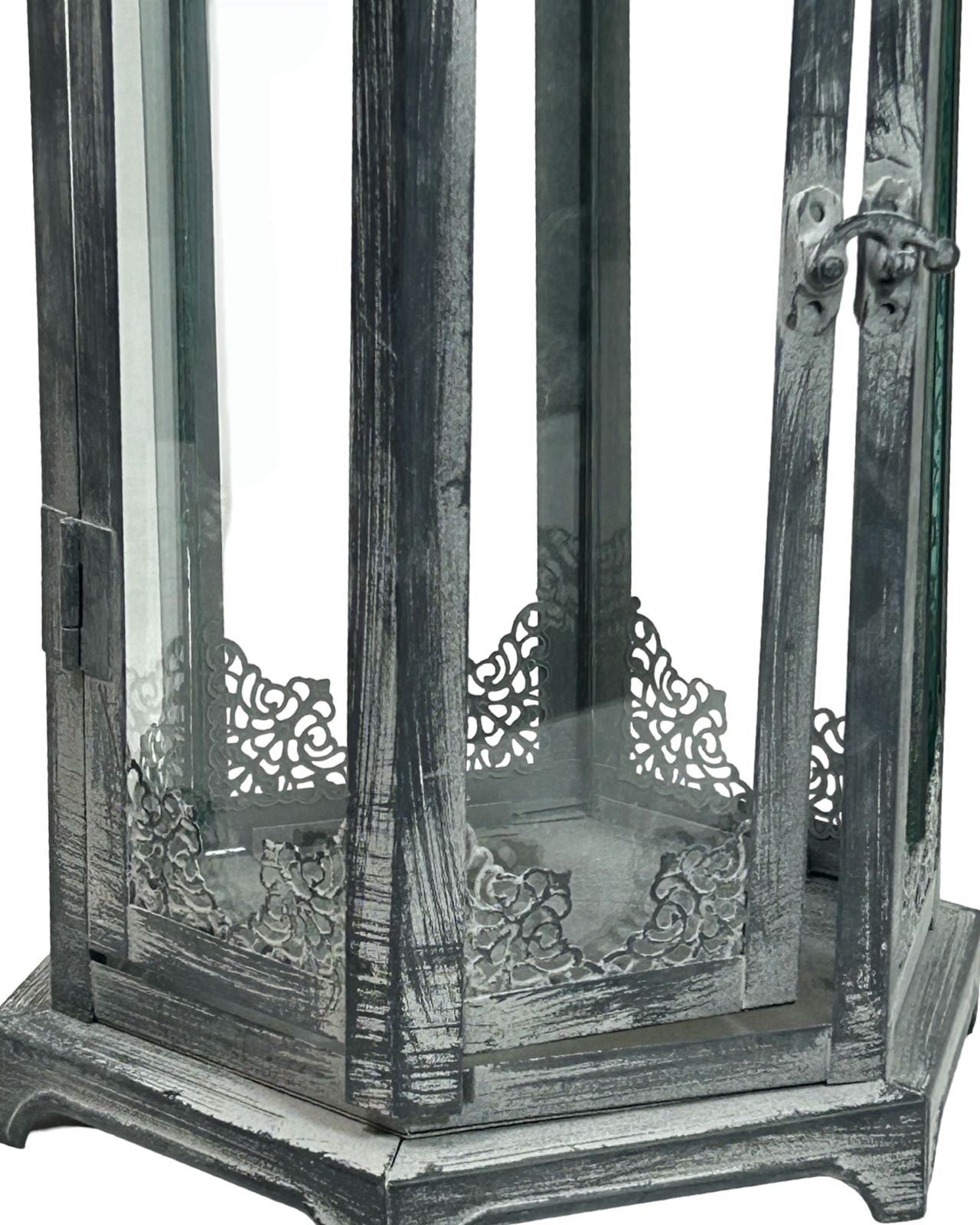 Elevate your ambiance with this elegant octagonal metal lantern, available in two sizes to perfectly complement any space. Crafted with a sleek metallic finish, it combines durability with refined design, casting a warm, inviting glow that enhances both indoor and outdoor settings with subtle sophistication.