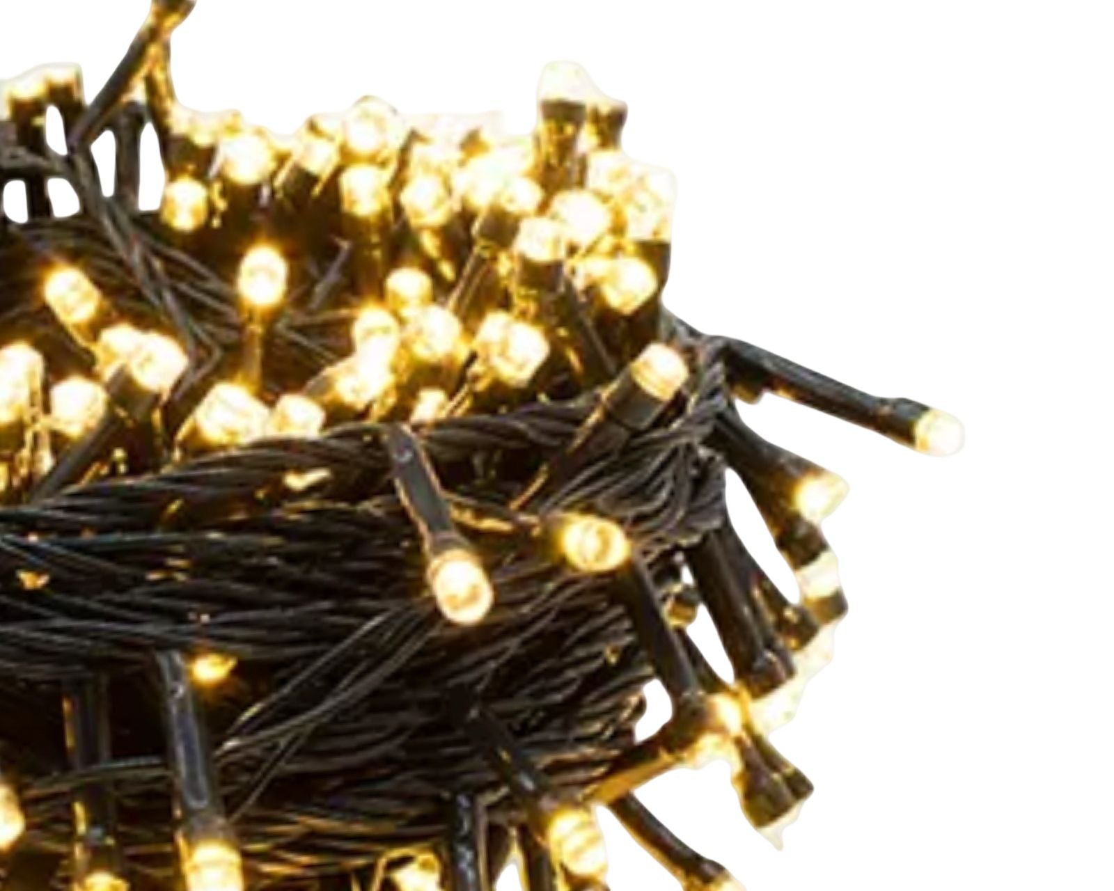 Elevate your space with this elegant 9-meter string of 100 warm lights, delicately encased in a green cable that blends seamlessly with any decor. Perfect for creating an inviting atmosphere, its sophisticated design ensures both charm and subtlety for indoor and outdoor settings. Illuminate your surroundings with refined warmth and style.