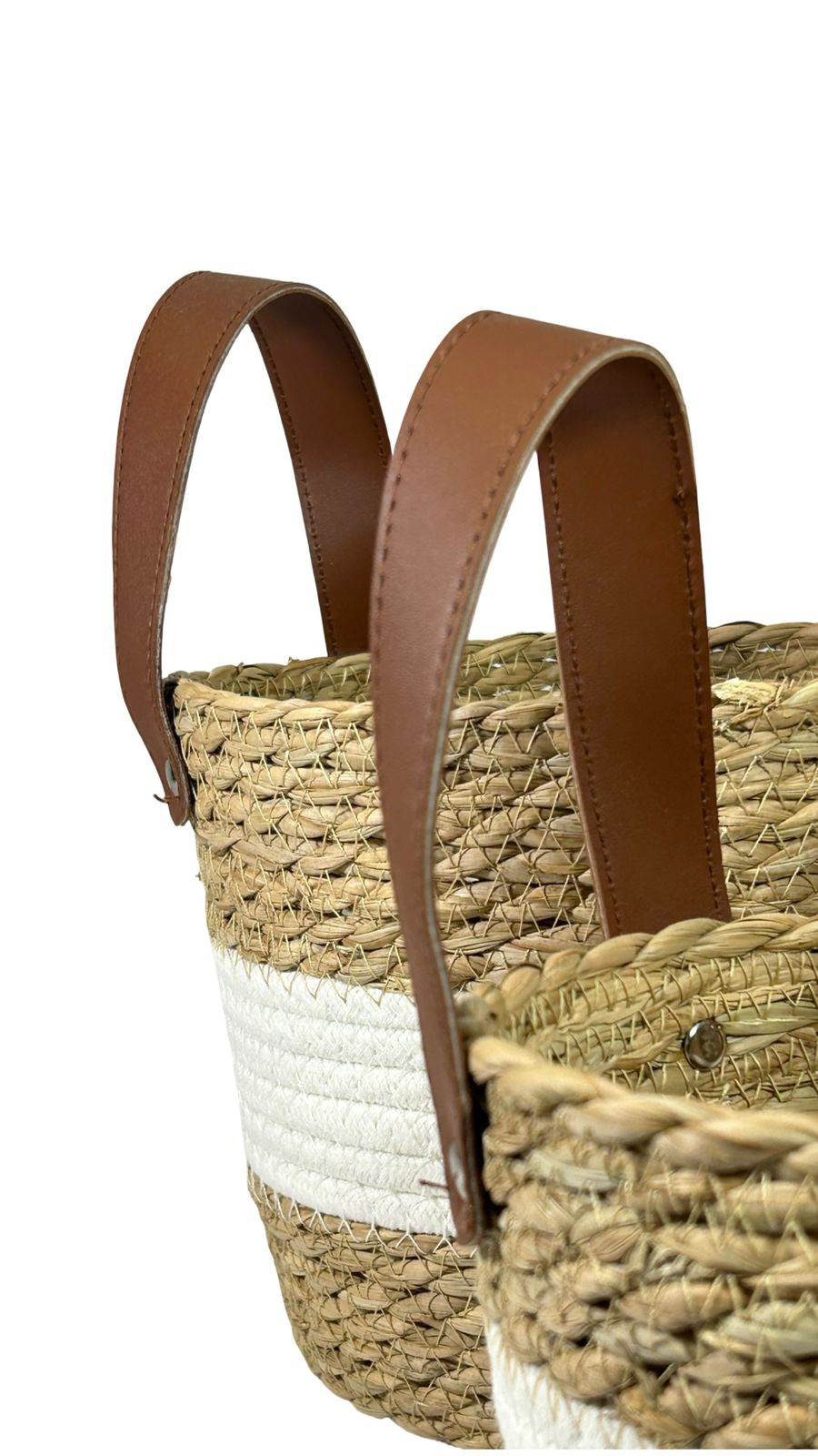 Conjunto de tres cestos tejidos en gradación de tamaños: 17, 14 y 13 centímetros. Elaborados con técnica artesanal, estos recipientes combinan funcionalidad y elegancia para organizar espacios con estilo. Ideales para almacenar textiles, accesorios o elementos decorativos. Su diseño versátil se adapta a cualquier ambiente, aportando calidez y sofisticación a la decoración del hogar.