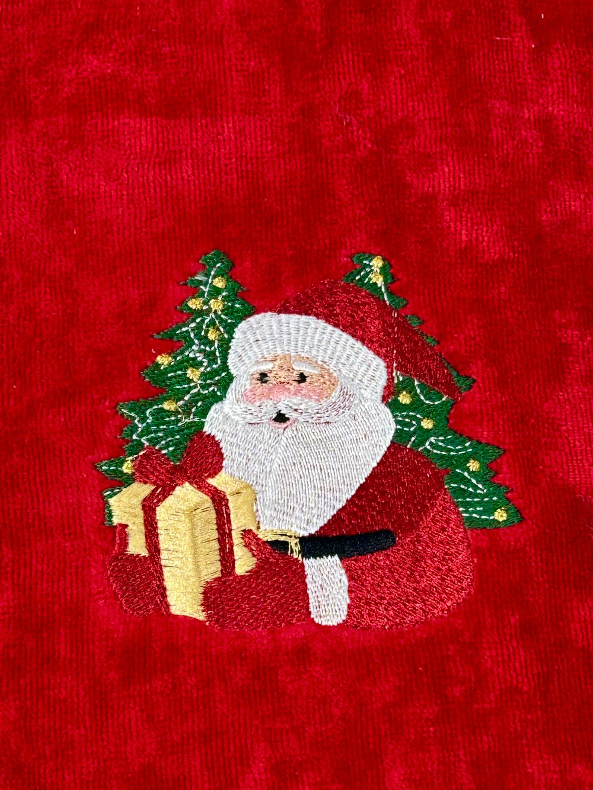 Esta toalla navideña roja, elaborada con algodón 100% de alta calidad y un gramaje de 500 g/m², ofrece suavidad y absorbencia excepcionales. Con dimensiones de 1x50 cm, presenta un delicado diseño que combina motivos de Santa Claus y un árbol de Navidad, aportando un toque elegante y festivo a cualquier espacio. Ideal para realzar la decoración navideña con estilo y funcionalidad.